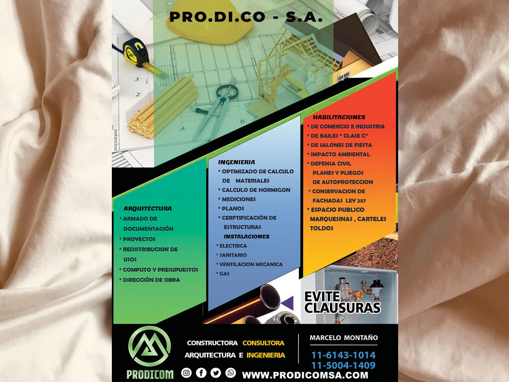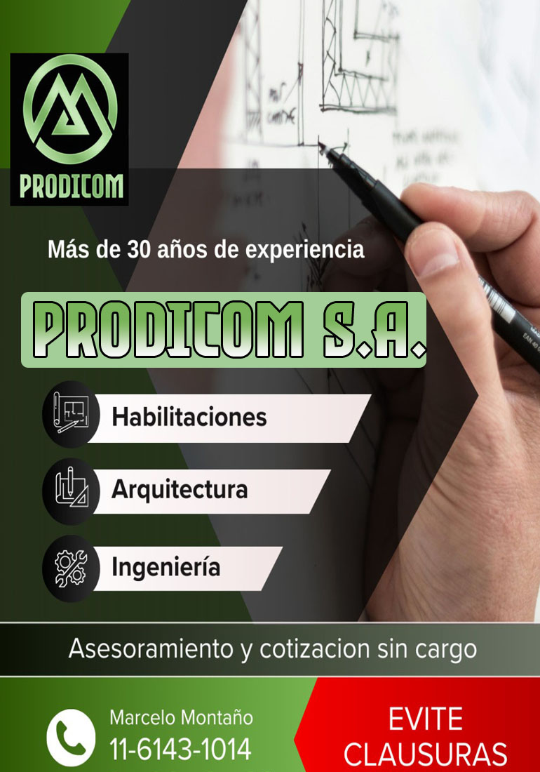 Prodicom S.A. es una empresa dedicada a brindar soluciones integrales en habilitaciones de locales, instalaciones de gas, obras sanitarias, construcciones, dirección de obras y proyectos.